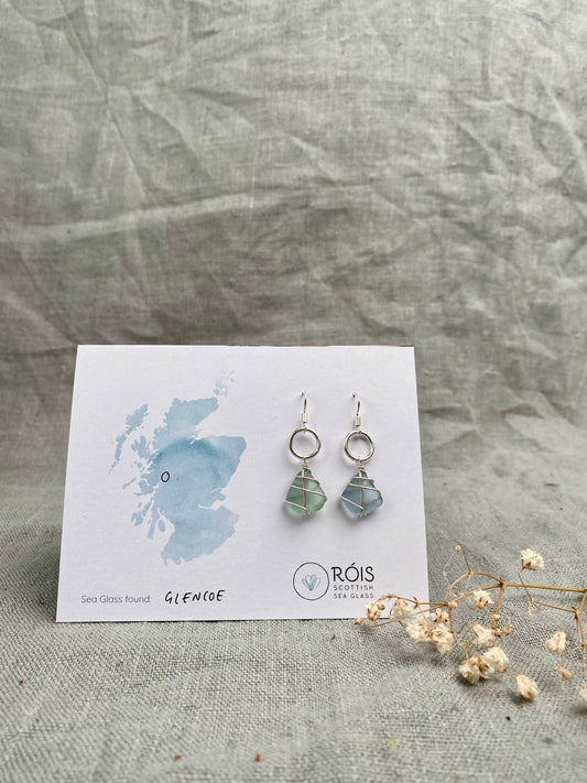 GLENCOE ~ Mismatch green & blue sterling silver drop hoops