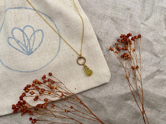 NORTH QUEENSFERRY ~ Chartreuse green & gold filled drop necklace