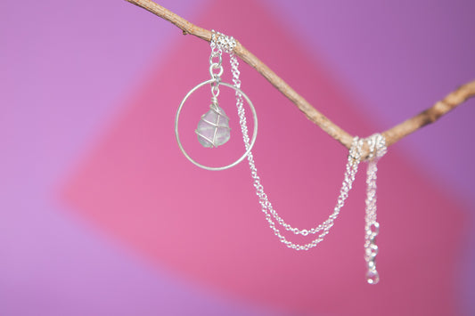 Jennie Hoop Necklace in Rose Gold & Light Blue