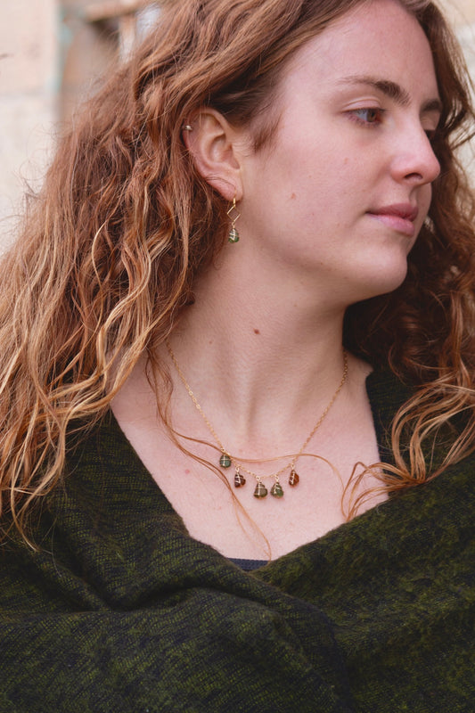 Xanthe Earrings in Gold & Dark Green