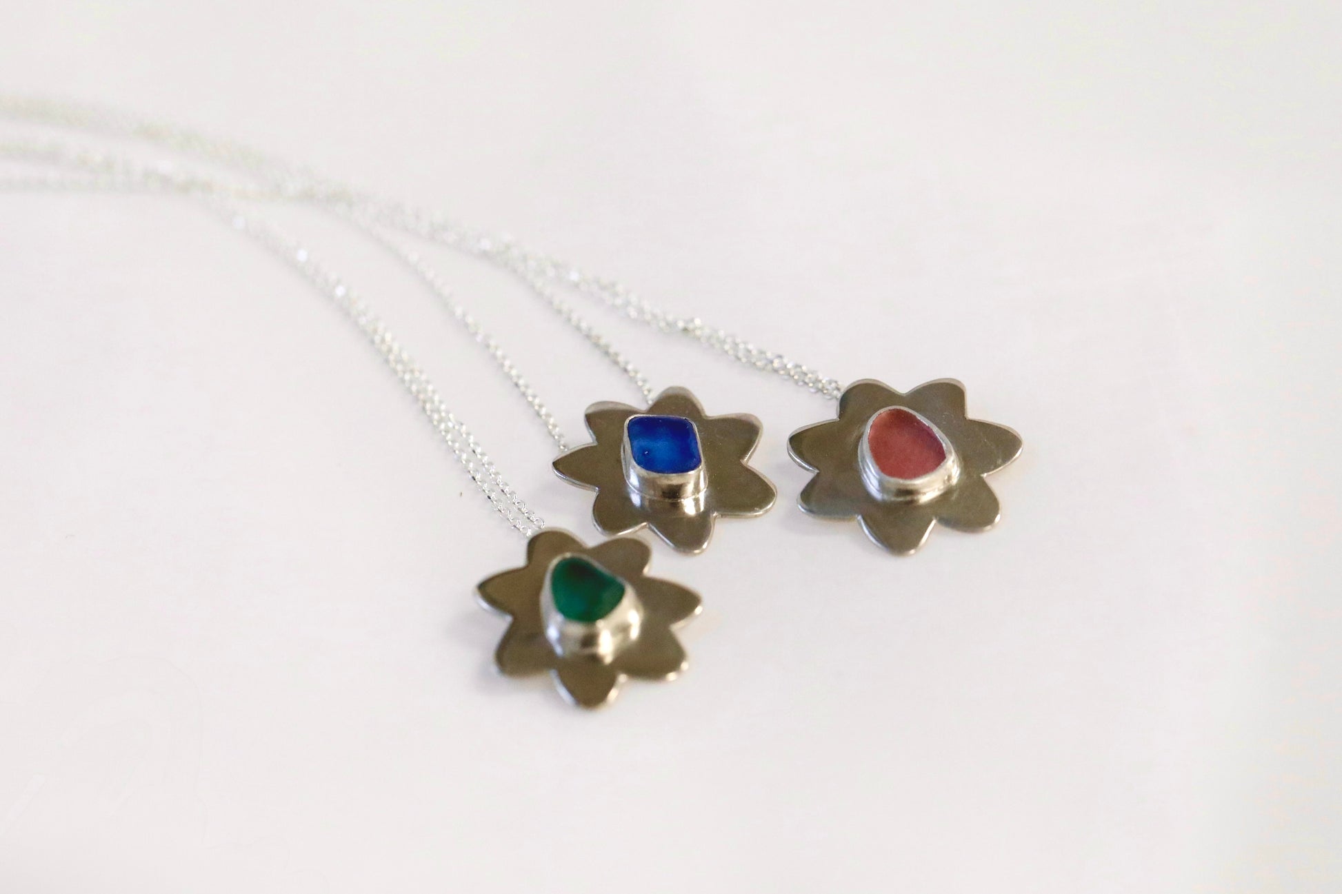 Each necklace base has been hand stamped with the location of the sea glass <3